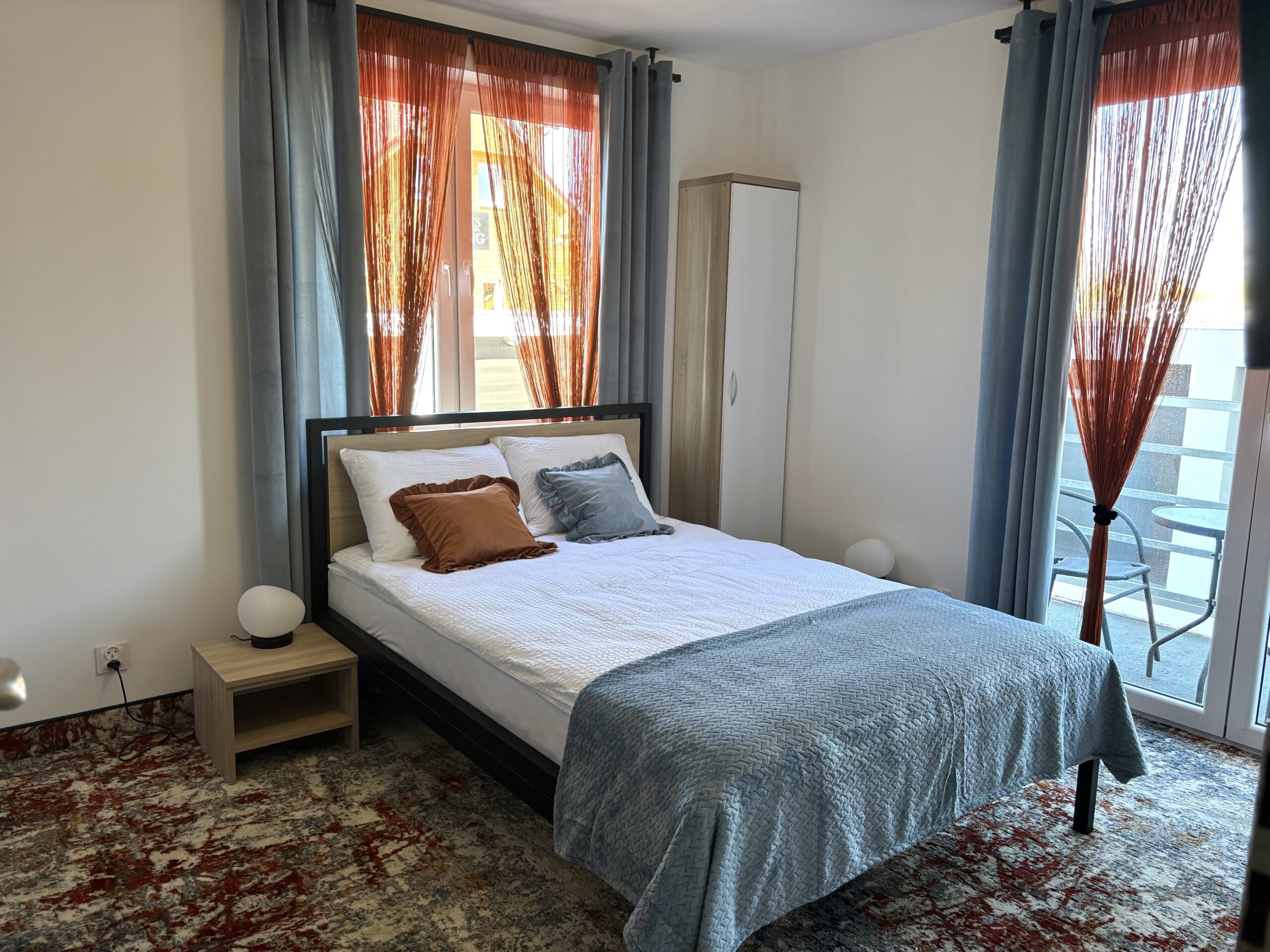 Przytulne pokoje dla par z balkonem. Na ich wyposażeniu znajdą Państwo podwójne łóżko, prywatny balkon, łazienkę z prysznicem, biurko oraz szafę na bagaże.