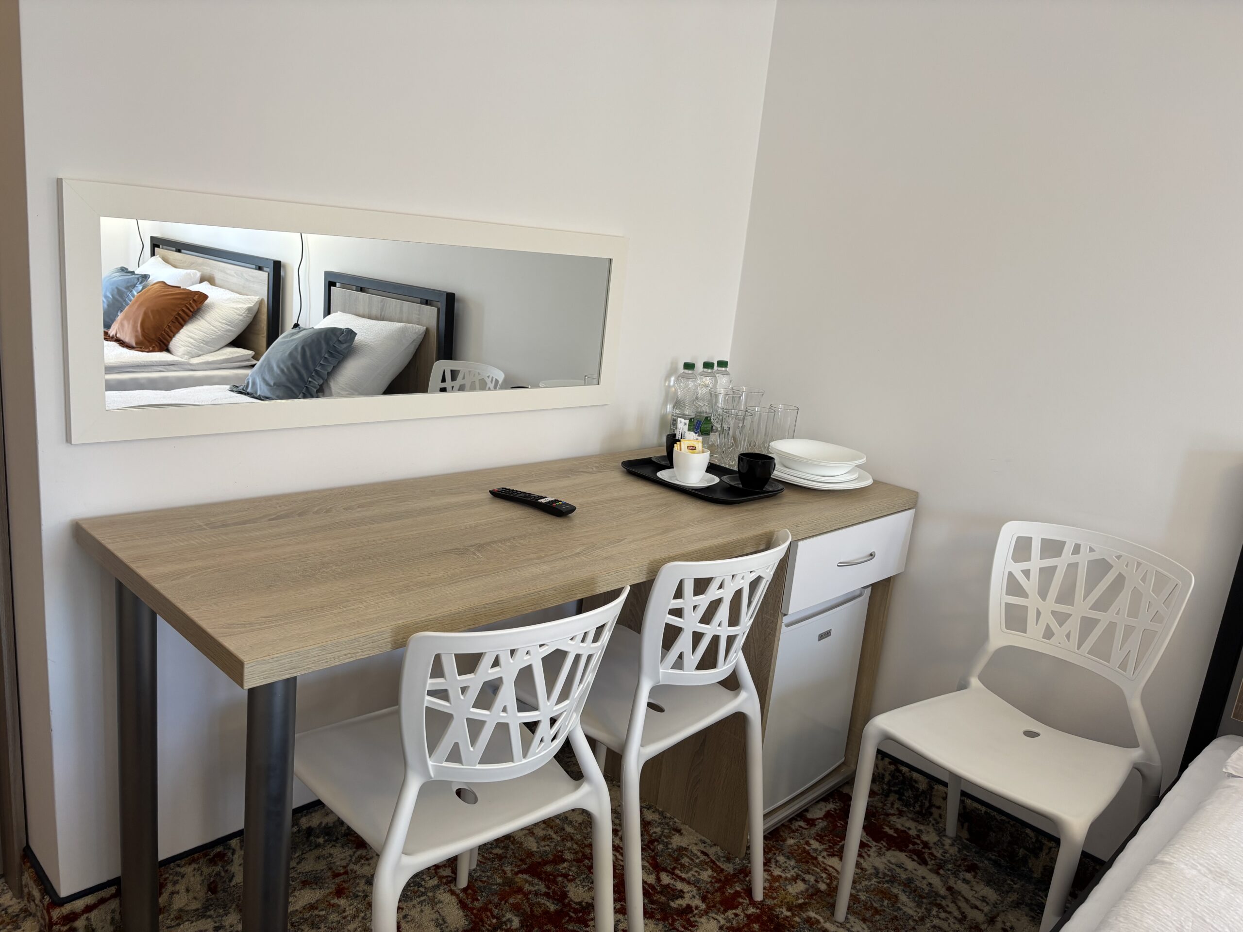 Miejsce godne polecenia! Ceny przystępne, właścicielka i obsługa bardzo mili, bezproblemowi. Bardzo dobra lokalizacja - niecałe 10 minut spacerkiem na deptak i zejście na plażę. Wyżywienie we własnym zakresie. W łazience dostępna suszarka do włosów. W pokoju można znaleźć także fotele plażowe, parawan
